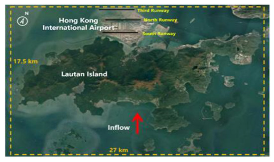 HKIA is located on an artificial Lantau island surrounded on three sides by open sea water with mountains to the south that reach elevations of over 900 m above sea level. Numerous observational and modeling studies have shown that HKIA’s intricate orography and complex land–sea contrast are conducive to the occurrence of LLWS [39]. It is one of the most susceptible airports to wind shear in the world. Significant LLWS events occur once every 400 to 500 flights [40]. As shown in Figure 4, the mountainous terrain to the south of HKIA amplifies LLWS, which disrupts airflow and generates mountain waves, gap discharges, and other disturbances along the HKIA flight paths. Two runways exist at HKIA: the North Runway and the South Runway. They are oriented in the 070° and 250° directions, respectively. Due to the fact that each runway can be used for takeoffs and landings in either direction, there are a total of eight possible configurations. For example, runway ‘07LA’ denotes landing (‘A’ refers to arrival) with a heading angle of 070° (shortened to ‘07’) using the left runway (hence ‘L’); this shows aircraft landing on North Runway from the western side of HKIA. Likewise, an aircraft departing from the South Runway in the west would use runway 25LD.