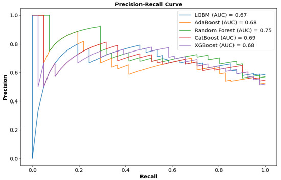 - The performance of each individual BO-ELC varied marginally. Despite the fact that XGBoost’s AUC-ROC was 0.73, its accuracy, recall, precision, F1-score, and AUC-PRC values were 0.652, 0.656, 0.664, 0.656, and 0.68, respectively.