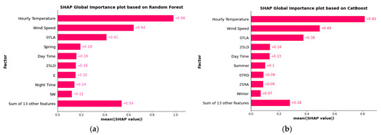 SHAP global importance plots: (a) Random Forest; (b) CatBoost.
