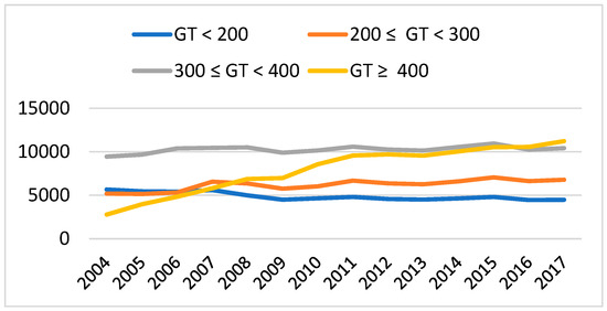 - In the period analyzed (2004–2017), the concentration of emissions of the Spanish tugboat fleet increased if we look at its distribution by region and decreased if we look at its distribution by age and size. This is due to the fact that tugboat activity was very different by region; however, its characteristics relative to age and size evolved more homogeneously.