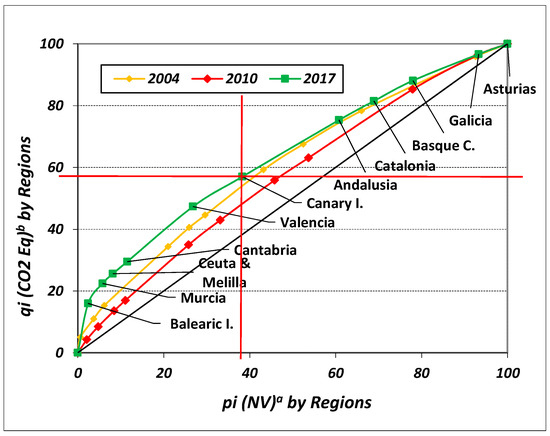 - In the period analyzed (2004–2017), the results obtained from the estimation of the Gini indices allow a relationship to be established for Spain between its level of economic activity and the degree of concentration of emissions from its fleet of port tugboats. In periods of crisis (economic recession), port activity is reduced and tends to concentrate more in the most efficient ports; therefore, the emissions of the tugs that operate in those ports also tend to concentrate more. In periods of growth (economic expansion), port activity increases and a greater number of ports are used to avoid congestion, meaning that the fleets operating in those ports are more spread out and the emissions produced by their activity are also more widely distributed.