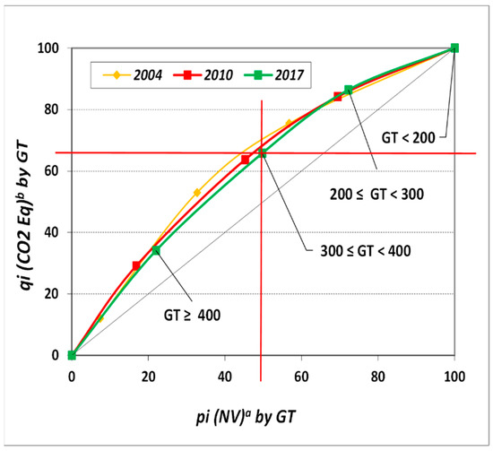 3.3. Concentration Indices of the Greenhouse Gas Emissions Lorenz Curves of the Spanish Tugboat Fleet