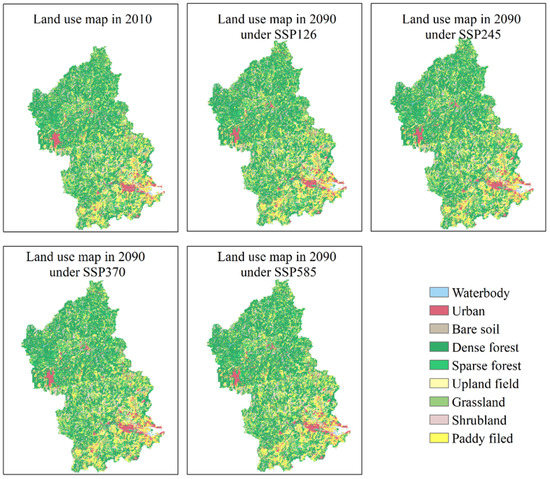 The following supporting information can be downloaded at: https://www.mdpi.com/article/10.3390/atmos13020150/s1, Figure S1: The projected land use maps under SSP126; Figure S2: The projected land use maps under SSP245; Figure S3: The projected land use maps under SSP370; Figure S4: The projected land use maps under SSP585.