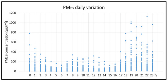 This analysis was conducted to observe the daily variation in PM2.5 concentration using PM2.5 concentration data obtained from the sampling site. The daily variation analysis was conducted to determine the peak hours of PM2.5 pollution.
