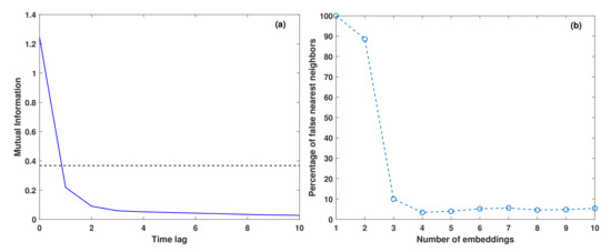 - Wallot, S.; Mønster, D. Calculation of Average Mutual Information (AMI) and False-Nearest Neighbors (FNN) for the estimation of embedding parameters of multidimensional time series in Matlab. Front. Psychol. 2018, 9, 1679. [Google Scholar] [CrossRef]