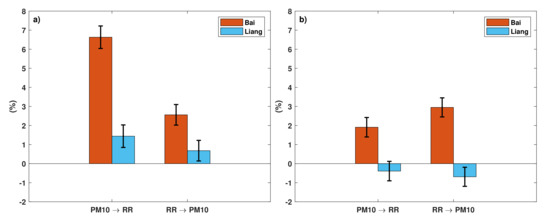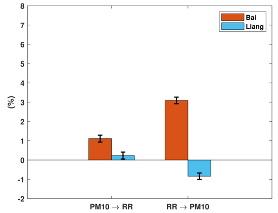 - Plocoste, T.; Calif, R. Is there a causal relationship between Particulate Matter (PM10) and air Temperature data? An analysis based on the Liang–Kleeman information transfer theory. Atmos. Pollut. Res. 2021, 12, 101177. [Google Scholar] [CrossRef]