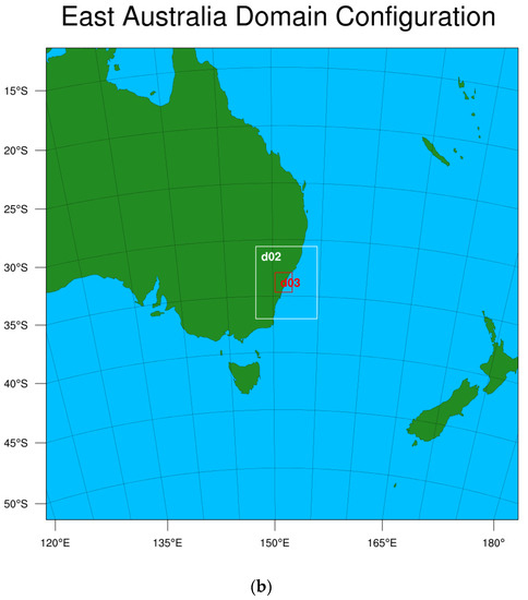 The simulation domain configuration, as shown in Figure 1b, for the WRF-CMAQ run was a three-nested domain with the outer domain (d01) covering much of Eastern Australia at the resolution of 12 × 12 km. The inner domain (d02) was at 4 km × 4 km resolution covering most of NSW, while the innermost domain (d03) was at 1 × 1 km resolution and covered the Greater Metropolitan Region (GMR) of Sydney [24]. The initial and boundary conditions and host data for meteorology were from the US National Centre for Environmental Prediction (NCEP) Final Reanalysis data. The physics schemes used in WRF are listed in Table 1.