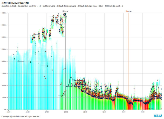 - Kotthaus, S.; Grimmond, C.S.B. Atmospheric boundary-layer characteristics from ceilometer measurements. Part 2: Application to London’s urban boundary layer. Q. J. R. Meteorol. Soc. 2018, 144, 1511–1524. [Google Scholar] [CrossRef] [Green Version]