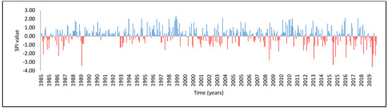 SPI time series, Argentina Hda station in the period (1985–2019).