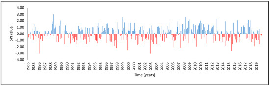 SPI time series, Rafael Bravo station in the period (1985–2019).