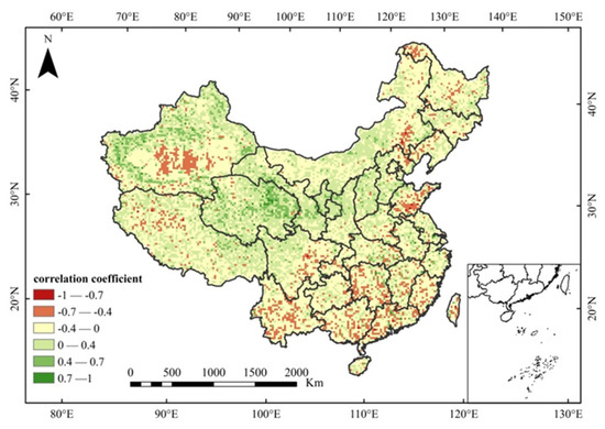 The spatial correlation calculation was based on the pixel spatial analysis method, which could analyze the correlation of TCO concentration and various impact factors (temperature, precipitation and vegetation coverage). In this study, the correlation of ozone concentration combined with the above three factors were analyzed.