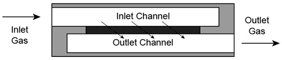 DPF is an after-treatment device that reduces the majority of engine-out particulate emissions. A classic DPF structure comprises a metallic shell, a cordierite or silicon carbide substrate, and liner. Figure 1 shows the structure of one DPF channel. As shown, the gas flow access is labyrinth-like; exhaust gas flowed through the alternatively plugged ends, and the particulate matter, mainly soot and ashes, were filtered and deposited alongside the inlet channel wall in the DPF substrate. Most of the exhaust particles were blocked by diffusion, interception, and impaction mechanisms chiefly depending on the particle sizes. The filtration efficiency of a clean DPF is not as high as its nominal effectiveness, but it will gradually increase to an above-90% level as exhaust particles continue plugging into the holes across the filtration medium and once a soot-cake layer is established. Soot-cake layer provides extra filtration efficiency because it functions similar to an additional filtration medium with lower permeability; however, this increment in filtration efficiency inevitably comes at the price of an extra pressure drop, inducing engine derating and fuel penalty. Therefore, when the particulate matter inside a DPF accumulates to a certain amount, the regeneration strategy must be triggered. The regeneration strategy works by oxidizing particulate matter stored in DPF in high temperature using oxidizable gases in exhaust, such as O2 and NO2 [42]. There is usually a noble catalyst washcoat on the inner surface of DPF substrates to ease these regeneration reactions occurring at lower temperatures [43].