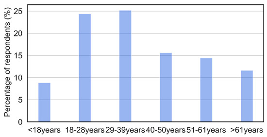 Regarding the age of individuals, 8.8% of respondents were less than 18 years old, 24.4% were in their 20 s, 25.2% in their 30 s, 15.6% in their 40 s, 14.4% in their 50 s, and 11.6% were over 61 years old (Figure 1). This indicates a typical age distribution of tourist flows, as the most active ages between 18 and 40 years old represent nearly 50% of the current sample.