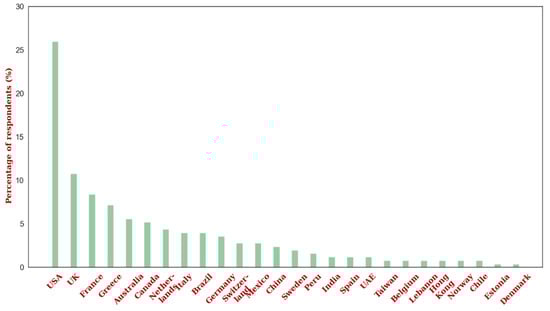 Figure 2 shows the nationality distribution of the sample (250 respondents). Many participants, namely one fifth of the sample (26%), live in the United States, while the second (10.8%) and third (8.4%) largest part of the sample lives in the UK and France, respectively. About 7% of the sample were Greek citizens. Therefore, no specific pattern in the country origin of the participants was observed. It is noted that although both questions on nationality and country of residence were included in the questionnaire, only the latter is presented here since it was considered that this demographic characteristic affects the climate perceptions and preferences of tourists more.