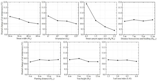 - Huang, K.-T.; Li, Y.-J. Impact of Street Canyon Typology on Building’s Peak Cooling Energy Demand: A Parametric Analysis Using Orthogonal Experiment. Energy Build. 2017, 154, 448–464. [Google Scholar] [CrossRef]