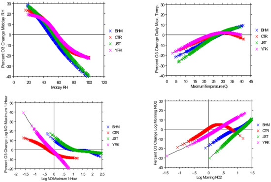 Ambient concentrations represent a sum of in situ, ambient chemistry, air–surface chemistry, including reactants and meteorological conditions. Many of these changes have been in response to urban reactant emission reductions modified by regional conditions associated in part with the infrastructure growth of large sources outside the urban environment. Changes in the urban chemical composition have occurred since the 1950s, as measured with trends in [40,41,42,43,44]. Future change is likely to be complicated by the influence of climate change, especially on extreme events [35,45], as well as potentially radical changes in reactant emissions associated with major emission sources, e.g., energy production and use.