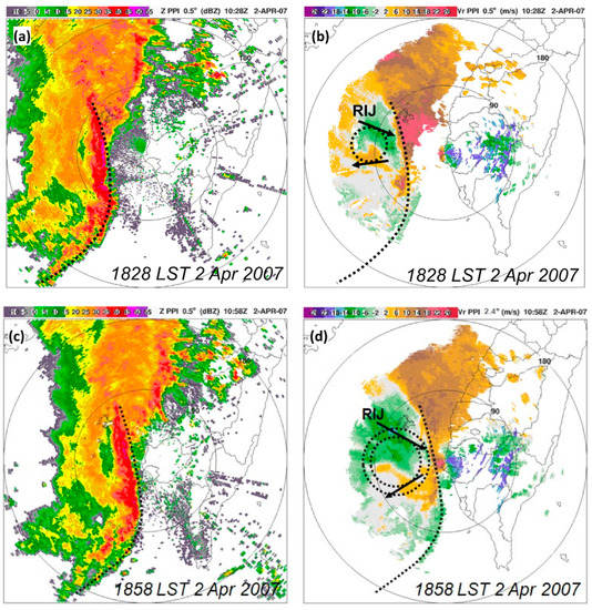- Kang, Y.; Jeong, J.-H.; You, C.H.; Lee, D.-I. Structure and evolution of a convective system with bow echo associated with terrain on Jeju Island, Korea. J. Meteorol. Soc. Jpn. 2018, 96, 447–460. [Google Scholar] [CrossRef]