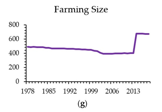 Crop growth and its development require the stable/favorable temperature, precipitation and sunshine. Low precipitation, increasing high temperature or higher sunshine intensity will lead to drought. Low level of temperature will cause freezing injury, and high level of precipitation will lead to flood disaster, which will affect agricultural production. Cui et al. [] used the transcendental logarithm production function model to analyze the impact of climate change during crop growth period on the unit production of one season cereal, wheat and maize in the case of China from 1975 to 2008, and reported the impact of climate change on different varieties. The impact on grain production in different regions is different. The increasing temperature can increase the unit production of spring wheat and corn in high latitudes. The impact of increased precipitation during crop growth on grain production varies with grain varieties. Although it has a positive impact on spring wheat production in the northwest region of China, it has a negative impact on winter wheat production in the southern region of China.