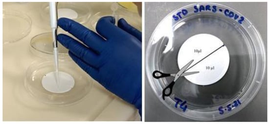 The genome copies of SARS-CoV-2 present in both solutions were determined by real-time PCR before spotting on the filters.