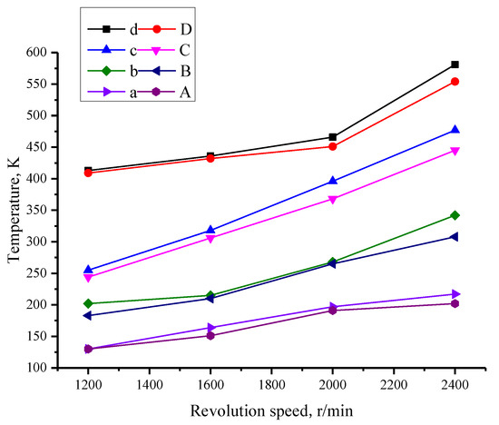 Variations in the diesel engine exhaust temperature at the different speeds and loads are shown in Figure 4. The figure reveals the following: