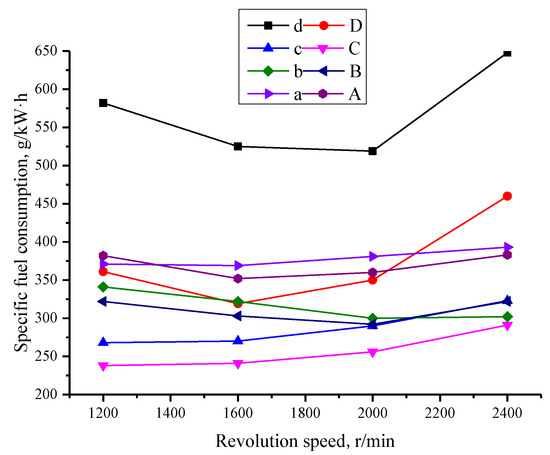 Fuel consumption rate change in the exhaust gas at different speeds and loads.