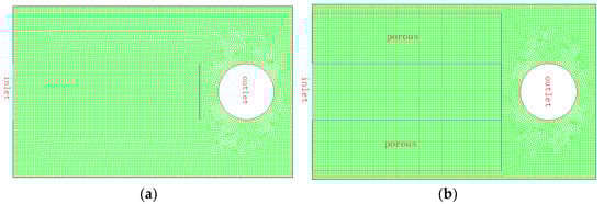 Two dimensional model of the optimized muffler. (a) without stainless steel fibers, (b) with stainless steel fibers.