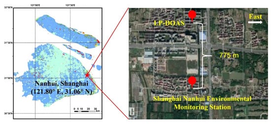 The topographic locations of the LP-DOAS instrument and Shanghai Nanhui Environmental Monitoring Station (© Google Earth).
