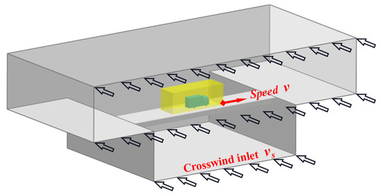 Analysis method for a vehicle on the bridge: the black arrows represent the direction of the crosswind and the direction is perpendicular to the crosswind inlet surface.