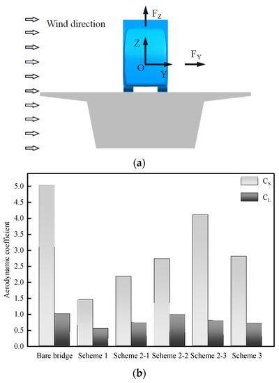 Effect of wind barrier on aerodynamic force ((a) Side forces; (b) Lift forces).