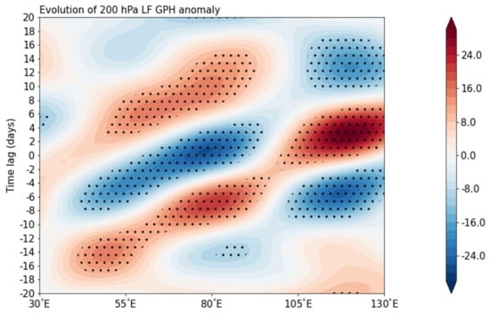 - Zhang, K.S. The 40-50 day low-frequency oscillation of the zonal men flow and its destabilizing effect. Chin. J. Atmos. Sci. 1987, 11, 227–236. (In Chinese) [Google Scholar]