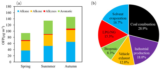 The contribution of different sources to OFP also changed according to season. The increased emissions from the local vegetation in the summer resulted in a higher contribution of biogenic emission to OFP. Coal combustion contributed less to the OFP in the summer because of its diminished contribution to VOCs in that season. These changes were attributed to the different VOC concentrations and reactivity of the indicator species. Therefore, source apportionment based on OFP can provide a basis for the development of countermeasures to reduce O3 concentrations.