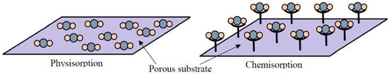 Schematic of the interactions between gas molecules and the adsorbent surface during physisorption and chemisorption (Reprinted with permission from ref. [26]).