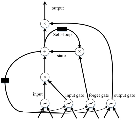 The structure of a single node of LSTM is shown in Figure 1 below, which is a threshold RNN. The ingeniousness of LSTM is that, by increasing the input, forgetting and output thresholds [21], the weight of the self-loop is changed, so that when the model parameters are fixed, the integration scale at different times can be continuously changed according to the requirements, thus avoiding the gradient disappearance or the occurrence of swelling problems [22].