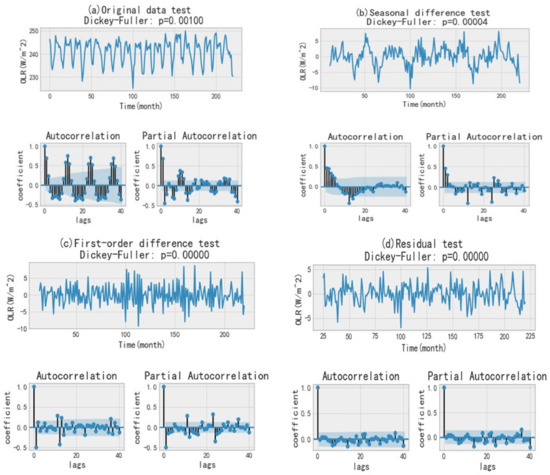 The seasonal autoregressive integrated moving average (SARIMA) model is a model for forecasting time series [19]. Taking the OLR data by AIRS detected in this paper as an example, the basic steps of time-series modeling are as follows: