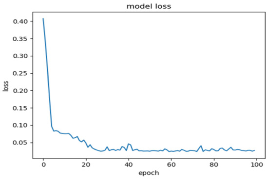 The number of training epochs is set to 100, and the error changes during the training process of the LSTM model are shown in Figure 11.