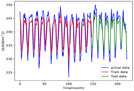 Since the OLR data can reflect a lot of air–sea information in the tropical ocean [8]. It can greatly supplement the shortcomings of the conventional detection methods in the tropics [9], with the continuous improvement and application of satellite remote sensing data. It has made up for the insufficiency of conventional data and provided conditions for the study of the distribution and variation characteristics of OLR [10]. OLR data have very important value for the study of atmospheric transport and radiation characteristics, spatial characteristics and inter-annual changes [11]. At the same time, the research on predicting the change trend of OLR value is particularly important for the study of the earth–atmosphere system in the world and even in China [12]. and the influence of OLR value on precipitation, sea temperature, cloudiness and other weather. It is very important to be able to predict the OLR based on OLR times series.