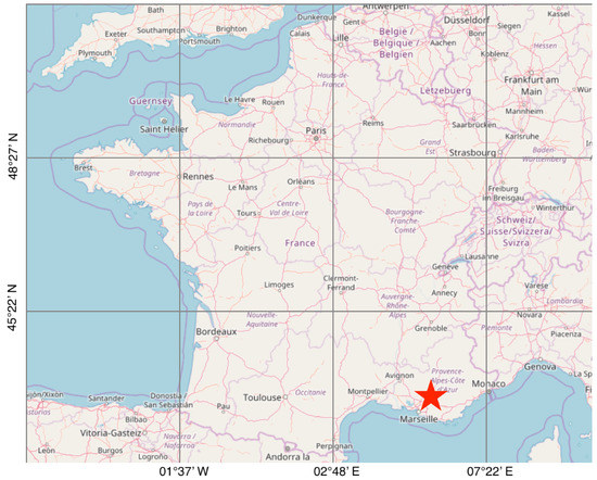 Map of France highlighting the Cadarache Valley experimental site (red star). © OpenStreetMap contributors [61].