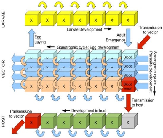 - Smith, D.L.; Ellis McKenzie, F. Statics and Dynamics of Malaria Infection in Anopheles Mosquitoes. Malar. J. 2004, 3, 13. [Google Scholar] [CrossRef] [Green Version]