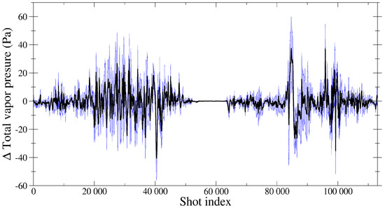 Discrepancies on the total amount of water vapour. Mean curve in black and area between ± one standard deviation in blue.