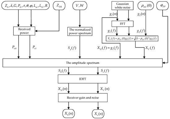 - First, the echo signal sequences and of the H−channel and V−channel of a single range gate are generated according to the echo signal simulation algorithm in Section 2.1.