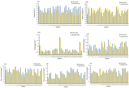 - NMSE and relative error were used to calculate the accuracy of the model, and the relative error and NMSE values are within an acceptable range. The relative error value and the NMSE value outside the house are both larger than those in the house because the atmospheric environment outside the house was more complicated than that in the house, and the turbulence phenomenon was more obvious, which leads to an increase in the simulation error. The PM concentration value obtained by the simulation was basically consistent with the data value measured by the experiment. The concentration on the north side was slightly higher than that on the south side.