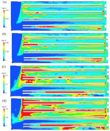 3.3.3. Simulated Diffusion Diagram of PM to Increase the Height of the Fan