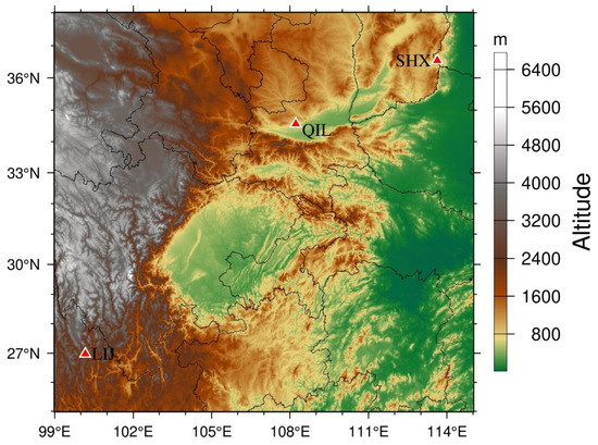 Four two-year-long sets of data were used to characterize the effects of temperature and instrumental drift in the long-term comparative observations from the Qianling observatory (January 2020–December 2021), the Lijiang observatory (May 2019–July 2021), and the Shexian observatory (January 2020–December 2021). The various time coverage of the comparative observations is mainly due to the fact that the station operational comparative observations at Qianling and Shexian observatories only started from January 2020, and the Lijiang observatory had construction interference from August 2021. The locations of these three observatories in China are shown in