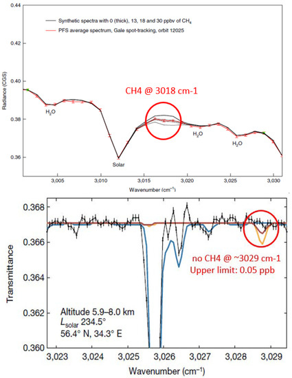 - Lefèvre, F.; Forget, F. Observed variations of methane on Mars unexplained by known atmospheric chemistry and physics. Nature 2009, 460, 720–723. [Google Scholar] [CrossRef]