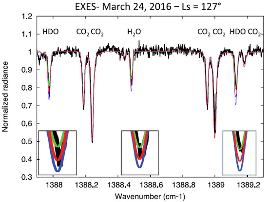 - Encrenaz, T.; DeWitt, C.; Richter, M.J.; Greathouse, T.K.; Fouchet, T.; Montmessin, F.; Lefèvre, F.; Forget, F.; Bézard, B.; Atreya, S.K.; et al. A map of D/H on Mars in the thermal infrared using EXES aboard SOFIA. Astron. Astrophys. 2016, 586, A62. [Google Scholar] [CrossRef]