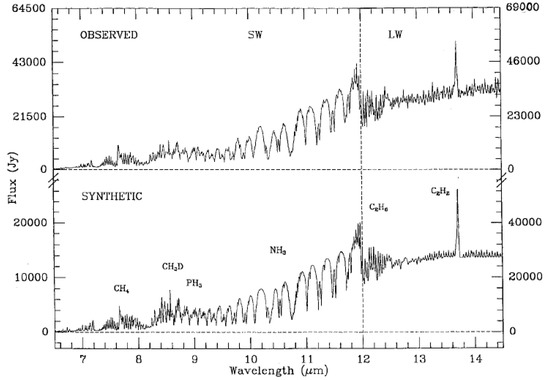 - Encrenaz, T.; Drossart, P.; Feuchtgruber, H.; Lellouch, E.; Bézard, B.; Fouchet, T.; Atreya, S. The atmospheric composition and structure of Jupiter and Saturn from ISO observations: A preliminary review. Planet. Space Sci. 1999, 47, 1225–1242. [Google Scholar] [CrossRef] [Green Version]