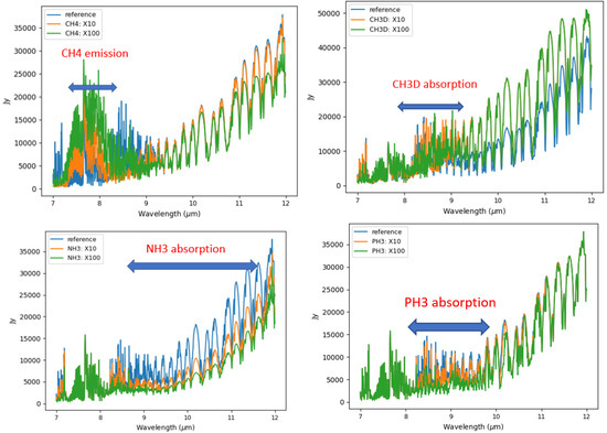 - Villanueva, G.; Smith, M.; Protopapa, S.; Faggi, S.; Mandell, A. Planetary spectrum generator: An accurate online radiative transfer suite for atmospheres, comets, small bodies and exoplanets. J. Quant. Spectrosc. Radiat. Transf. 2018, 217, 86–104. [Google Scholar] [CrossRef] [Green Version]