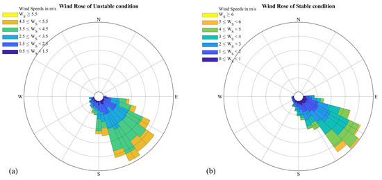 Wind roses in (a) unstable conditions; (b) stable conditions.