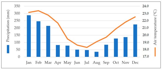 Climograph of the monthly variation in average air temperature and accumulated precipitation for the city of São Paulo, Brazil, in between 1981 and 2010, according to the data calculated by the National Institute of Meteorology (INMET) of Brazil according to the World Meteorological Organization (WMO) requirements, available in Table 2. Source: National Institute of Meteorology (INMET) of Brazil, normal climatological of 1981–2010. Figure elaborated by authors (2021).