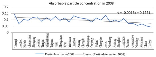In China, the concentration of absorbable particles decreased from north to south, and the decreasing trend did not change much in different years. As a result, the slope of the trend line of absorbable particle concentration composed of cities from north to south was basically stable.